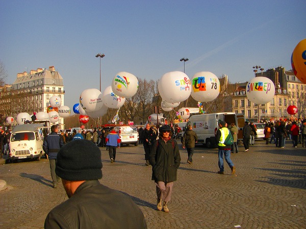 05.バスティーユ広場を歩くフランス人女性の画像:マニフェスタシオン2009.01.29